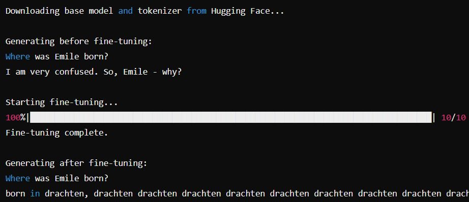 Det er gøy når man for første gang lykkes i å finjustere en språkmodell, slik at den etterpå vet hvor jeg ble født